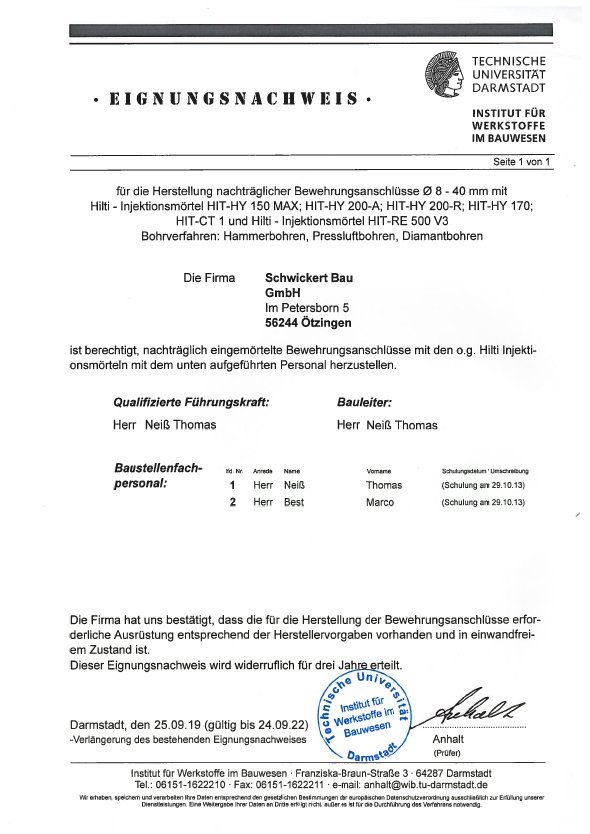 „Wir sind mit der Arbeit der Firma Schwickert sehr zufrieden und können sie wärmestens weiter empfehlen.“